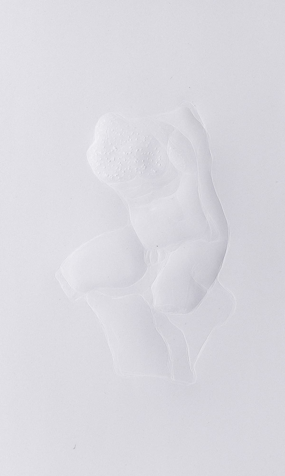 Diese Arbeit ist gezeichnet, geprägt und gedrückt – auf Steinpapier, das selbst schon Spur und Widerstand ist. Alles bleibt weiß. Sichtbar wird nur, was das Licht erlaubt. Schatten geben der Stille eine Stimme.